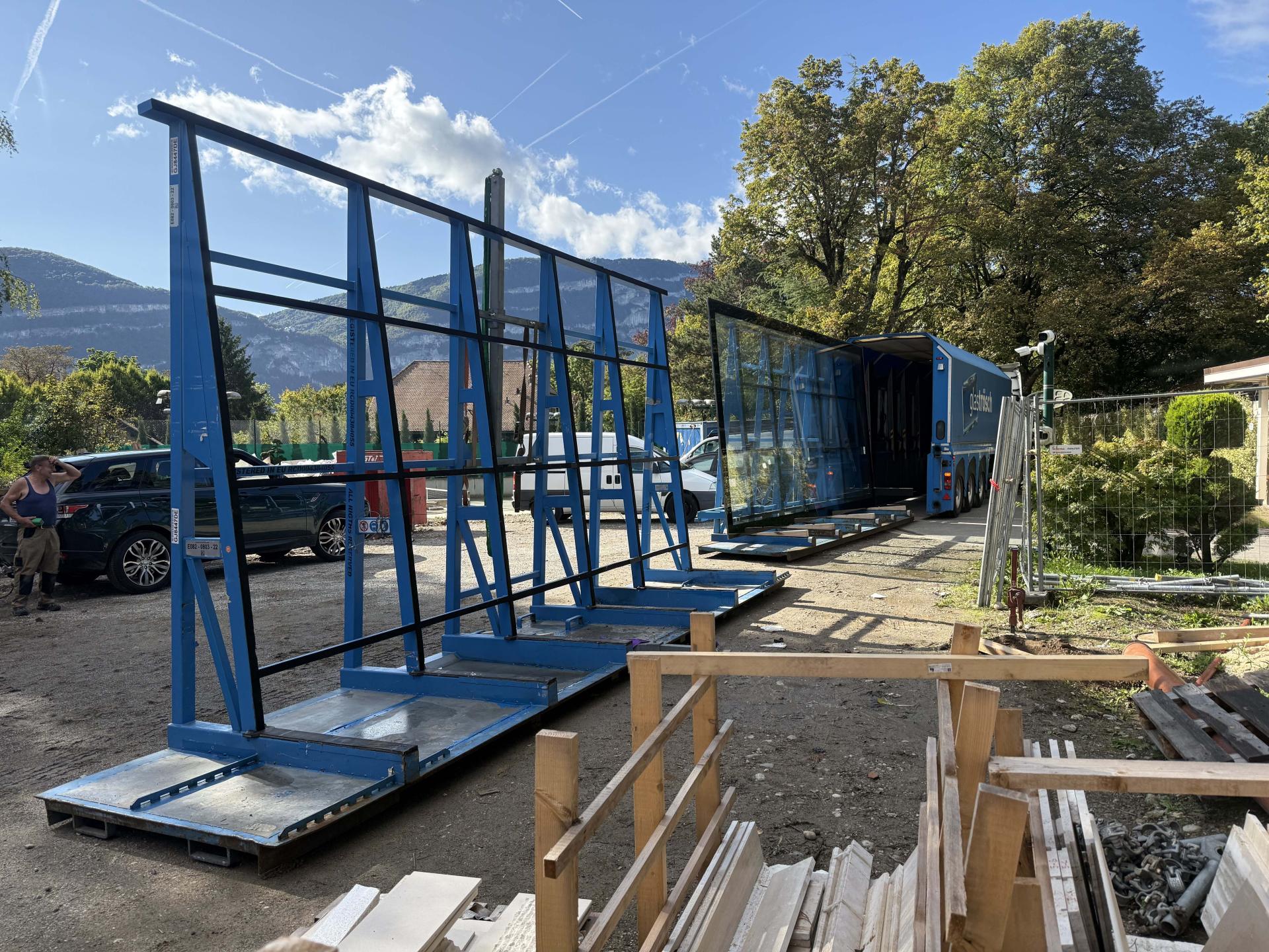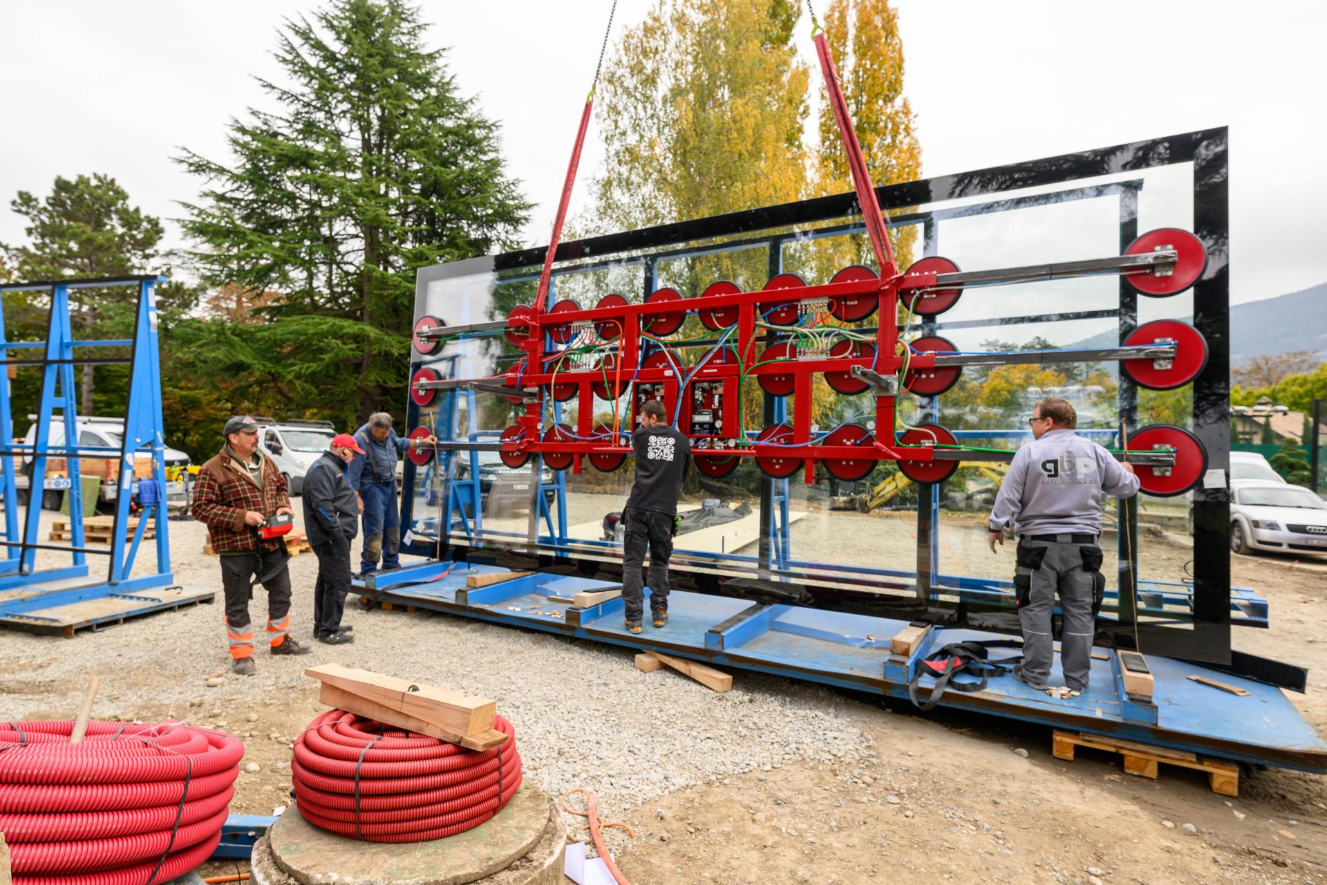 Elementgrösse 4.9 x 2.2 m. Konstruktion im unteren Bereich über 2.1 m frei gespannt.